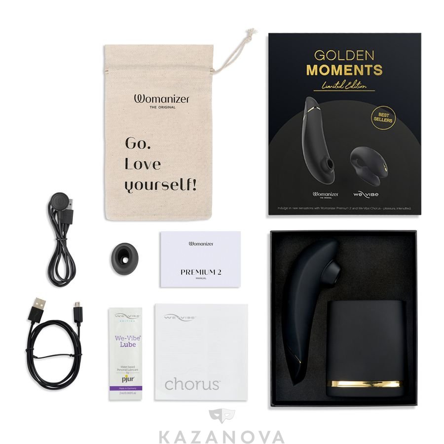 Набор Golden Moments: стимулятор Womanizer Premium 2 черный + WE-VIBE Chorus черный