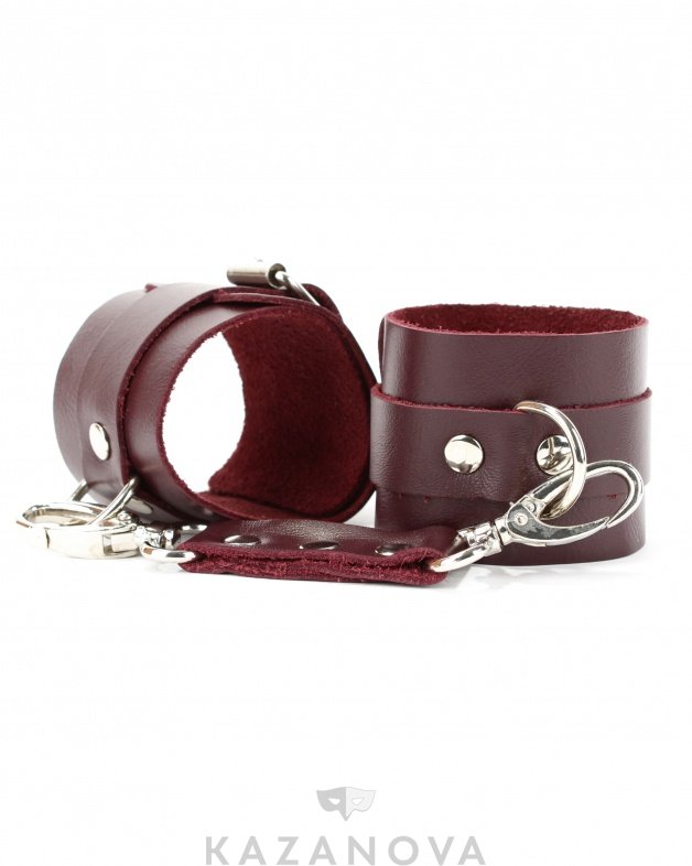 Бордовые наручи изготовлены из качественной натуральной кожи превосходного качества. Соединяются между собой и легко регулируются по размеру.
