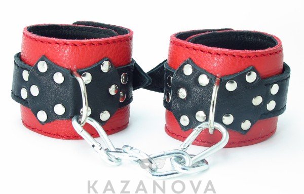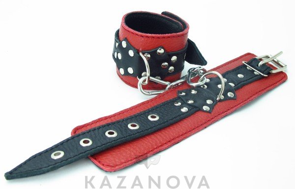 Наручи Арсенал из натуральной кожи красные с чёрными ремешками