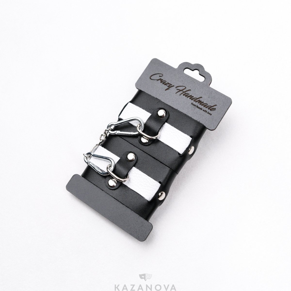 Наручи Crazy Handmade с белыми ремешками из натуральной кожи чёрные