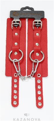 Наручи Crazy Handmade с кольцом из натуральной кожи красные