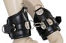 Наручи изготовлены из качественной искусственной кожи. Соединяются с помощью кольца и легко регулируются по размеру.