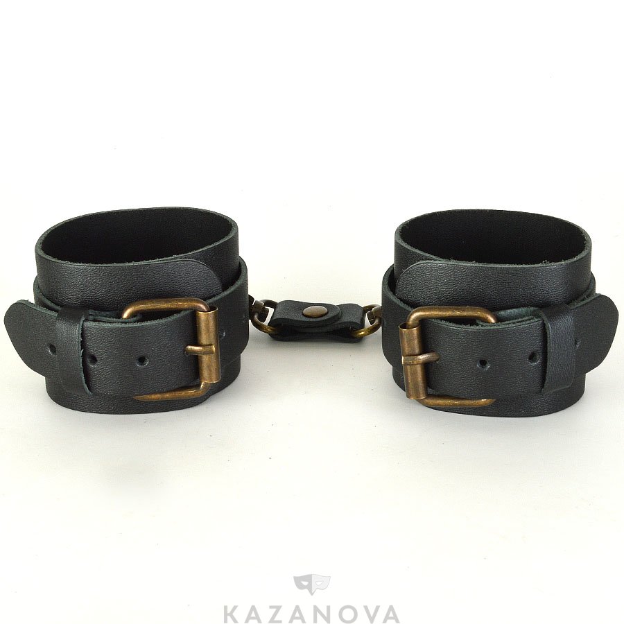 Наручи изготовлены из качественной натуральной кожи. Соединяются с помощью карабинов и легко регулируются по размеру.