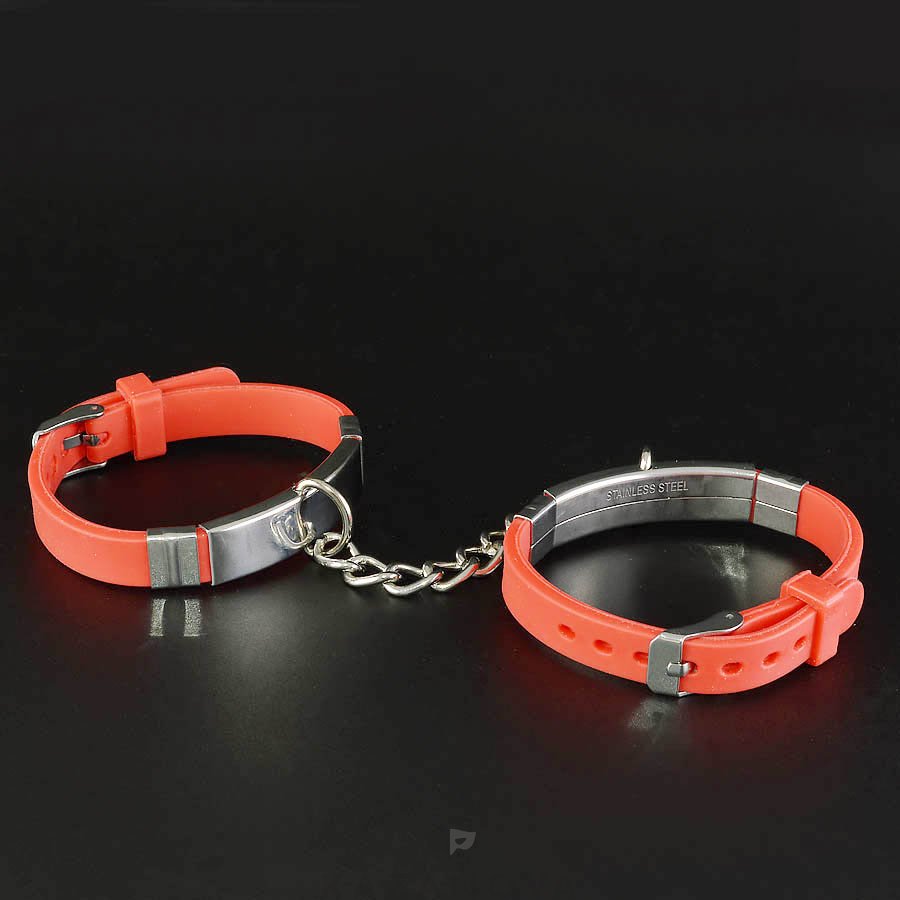 Наручи изготовлены из силикона. Соединяются перемычкой с двумя карабинами и легко регулируются по размеру.