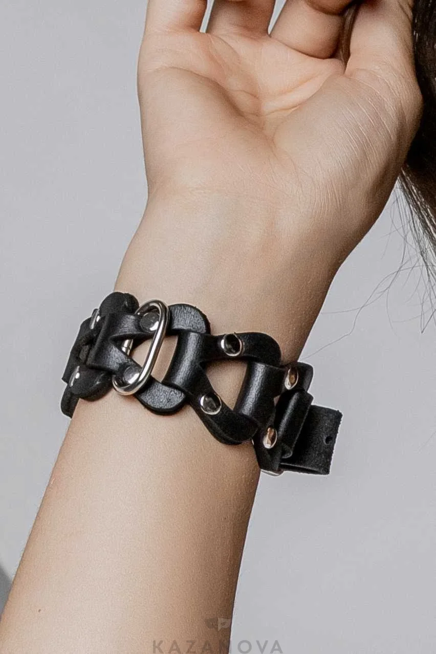 Аксессуар декорирован качественной металлической фурнитурой, регулировка происходит с помощью пряжек. В комплект к наручникам входит сцепка из металла.