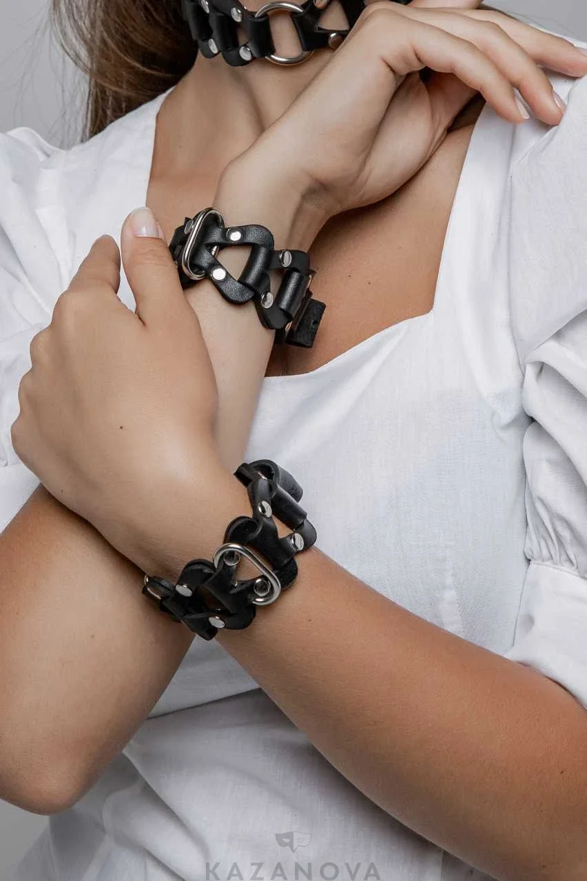 Наручники из натуральной кожи плетеные черные