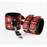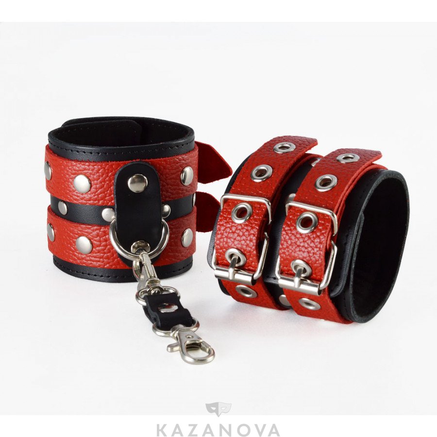 Наручники красно-черные мягкие из натуральной кожи на двух ремешках