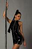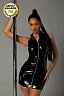 Платье сделано из плотной и эластичной ткани с виниловым блеском.