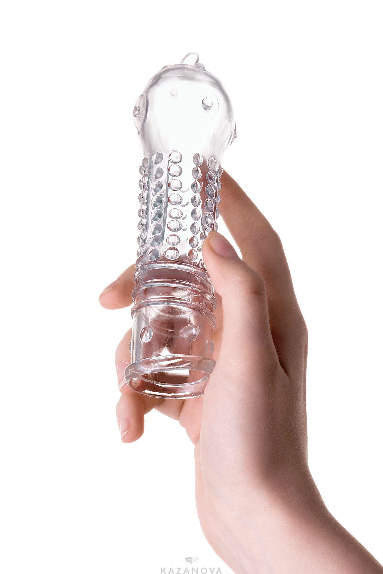 Насадка A-Toys из TPR с шипиками и кольцами прозрачная 14 см
