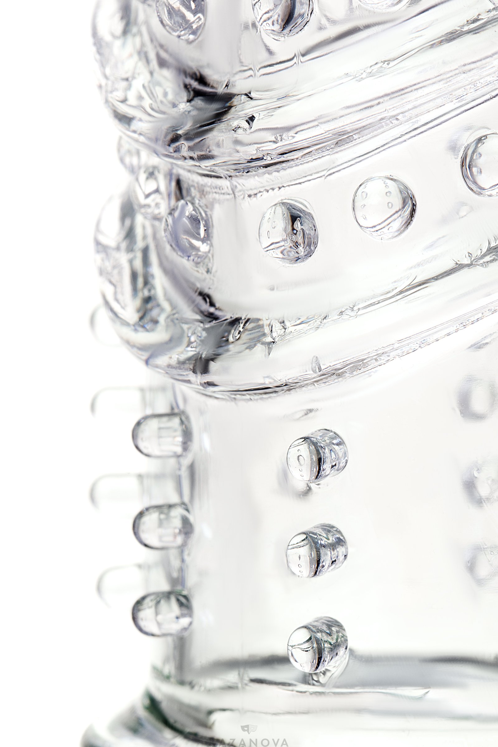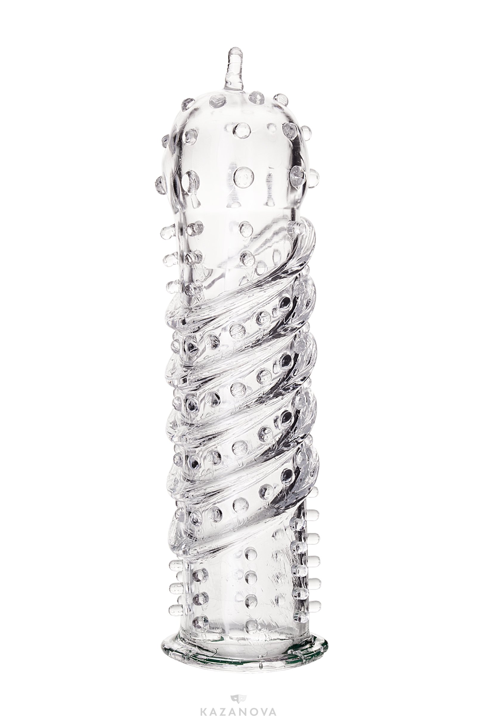 Насадка A-Toys из TPR с шипиками и спиральным рельефом прозрачная 15,3 см