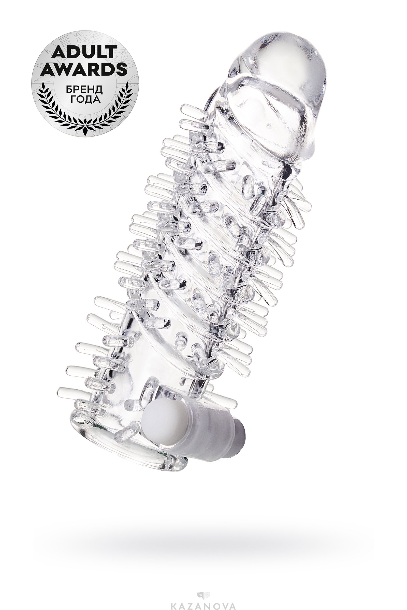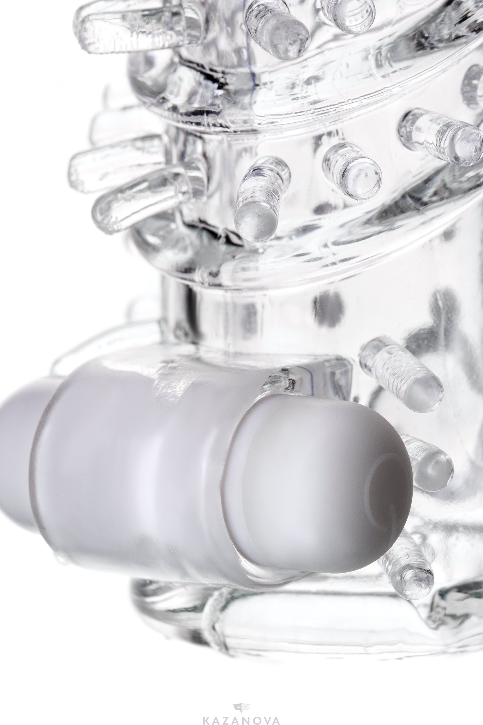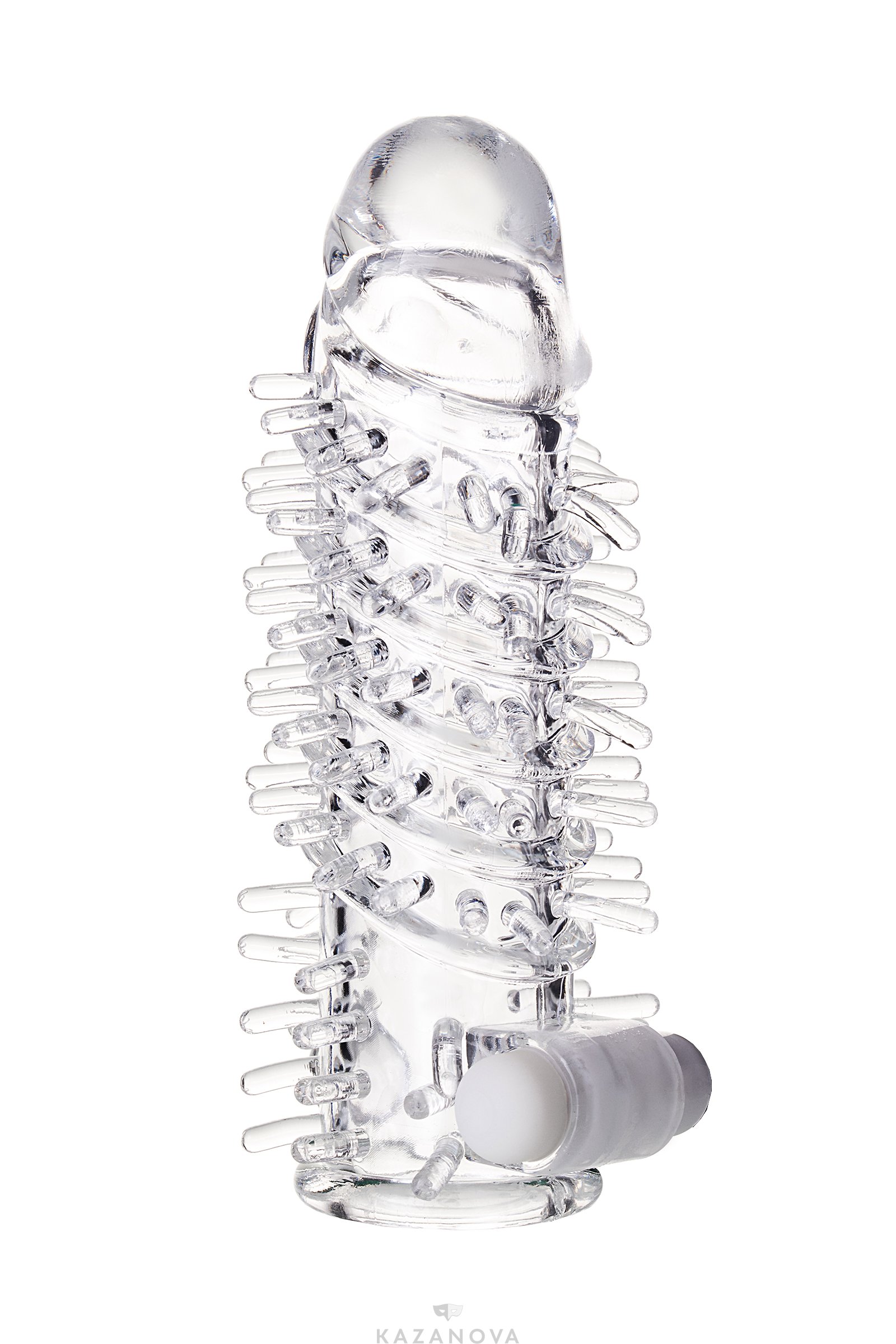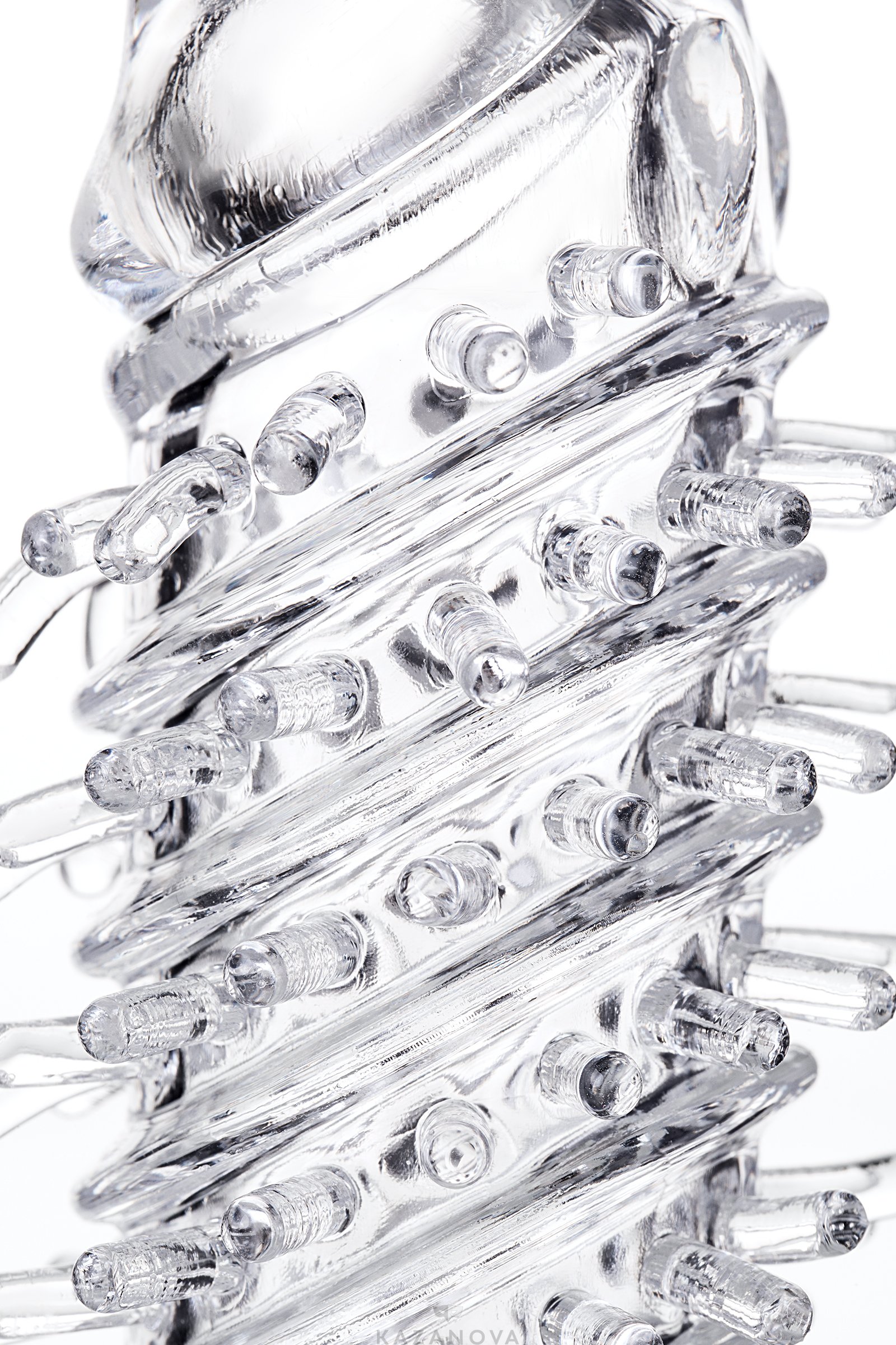 Насадка A-Toys из TPR с вибрацией и спиральным рельефом прозрачная 13,4 см