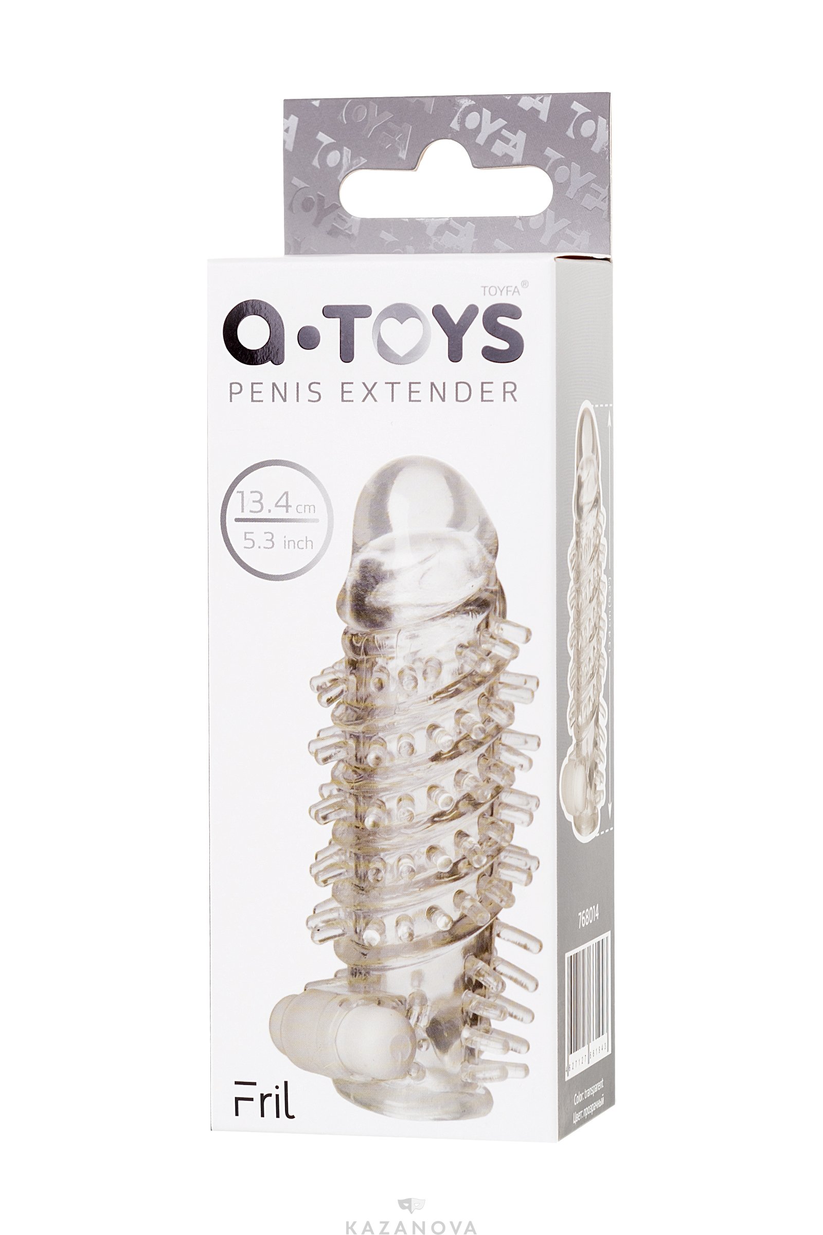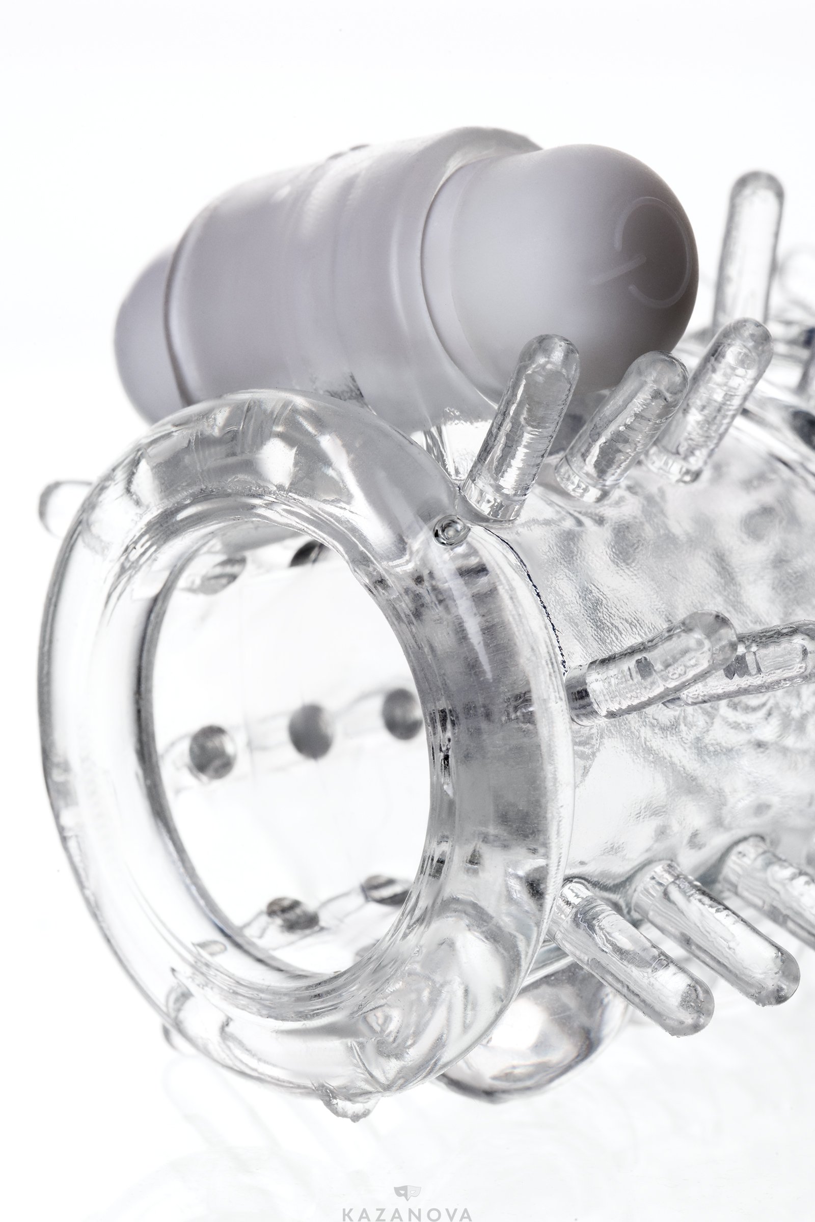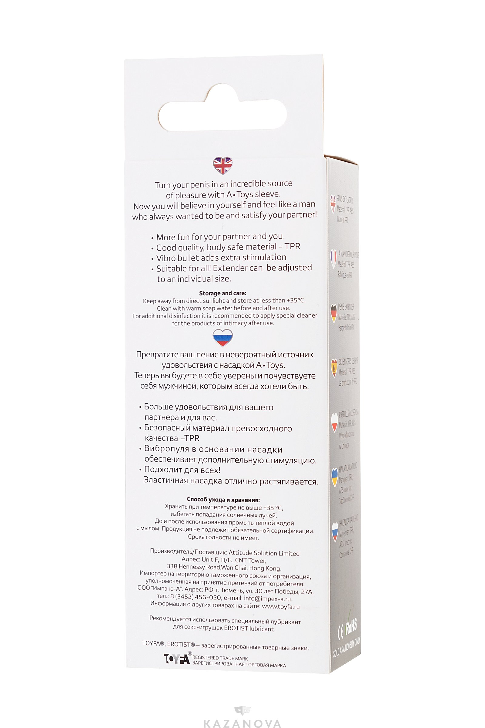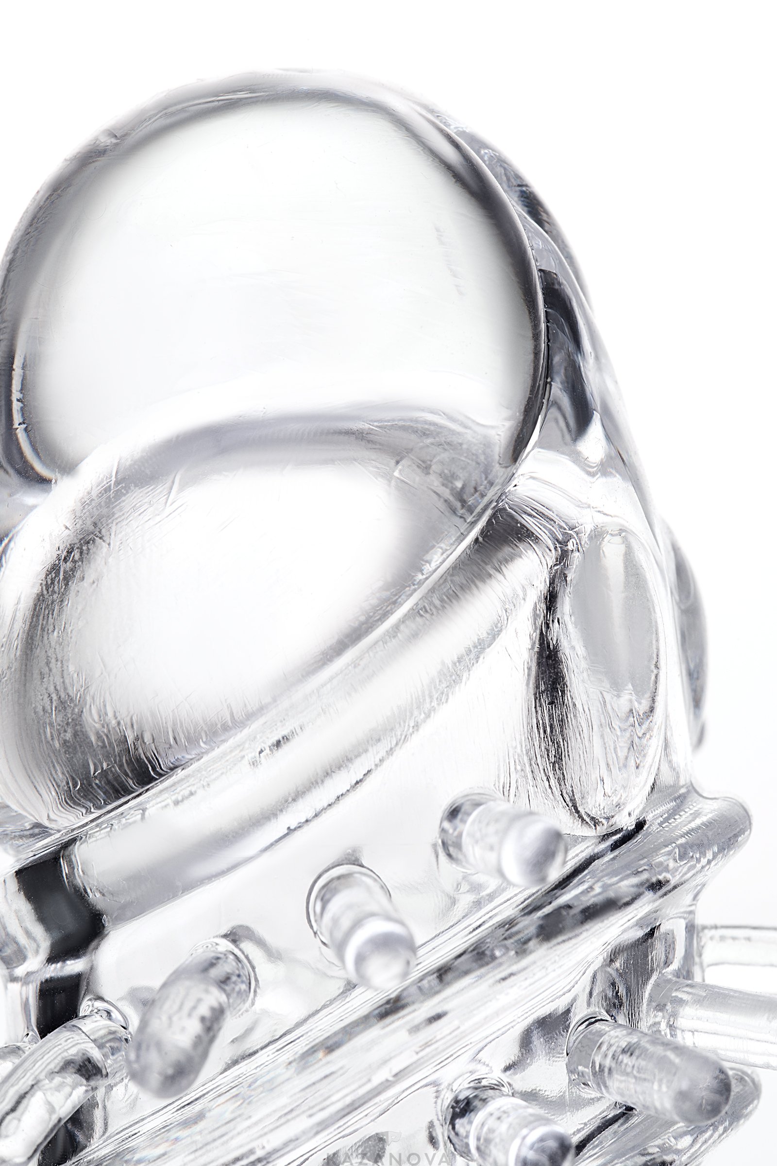 Насадка A-Toys из TPR с вибрацией и спиральным рельефом прозрачная 13,4 см