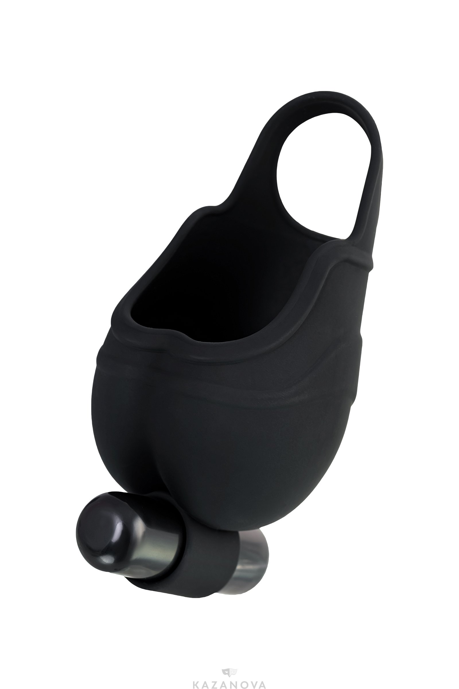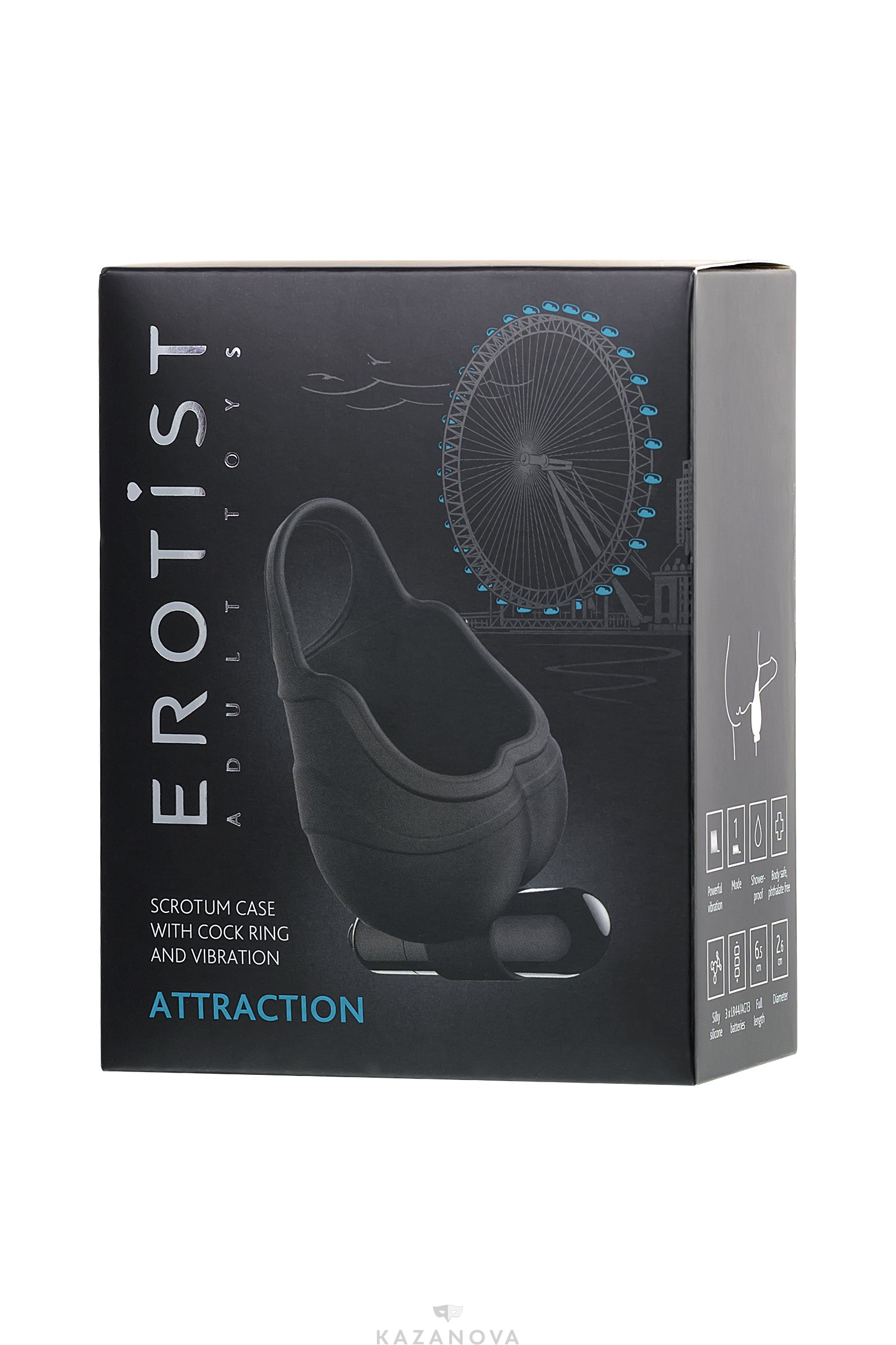 Насадка на мошонку с эрекционным кольцом Erotist Attraction с вибрацией из силикона черная