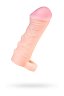 Насадка плотно обхватывает половой член, надежно фиксируется при помощи кольца на мошонке и не соскальзывает в самый ответственный момент.
