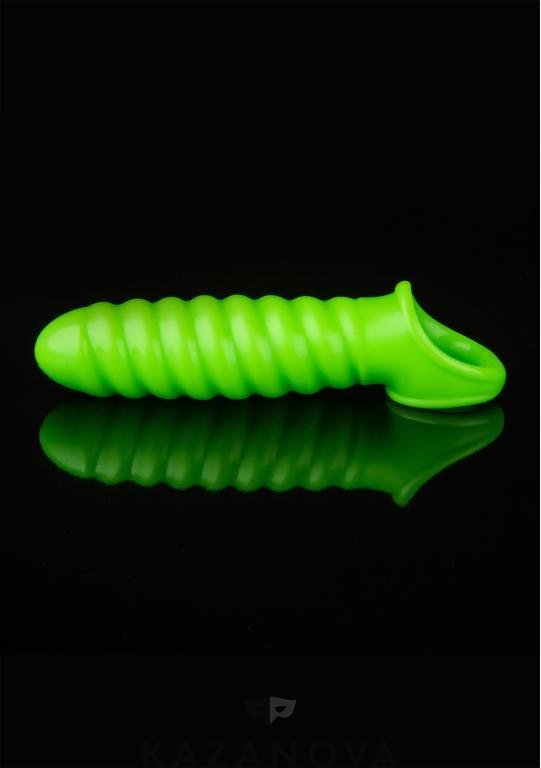 Насадка увеличивающая Ouch Glow ребристая светящаяся зеленая