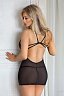 Сексуальная ночная сорочка, выполненная из мягкой сетки и нежного кружева, с открытой спиной. Лиф сорочки выполнен из кружева с цветочным орнаментом и декорирован мелкими стразами. Стринги в комплекте.