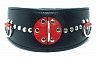 Ошейник Арсенал из натуральной кожи с красными вставками на клепках черный