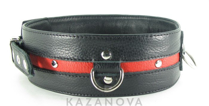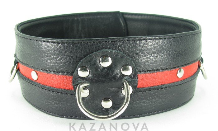 Ошейник Арсенал XL из натуральной кожи черный с красным декором