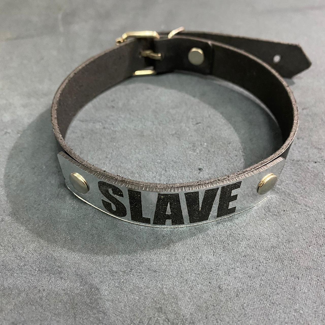 Ошейник Crazy Handmade Slave из натуральной кожи узкий чёрный