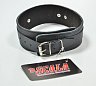 Ошейник изготовлен из натуральной кожи черного цвета и декорирован кольцом из металла.
