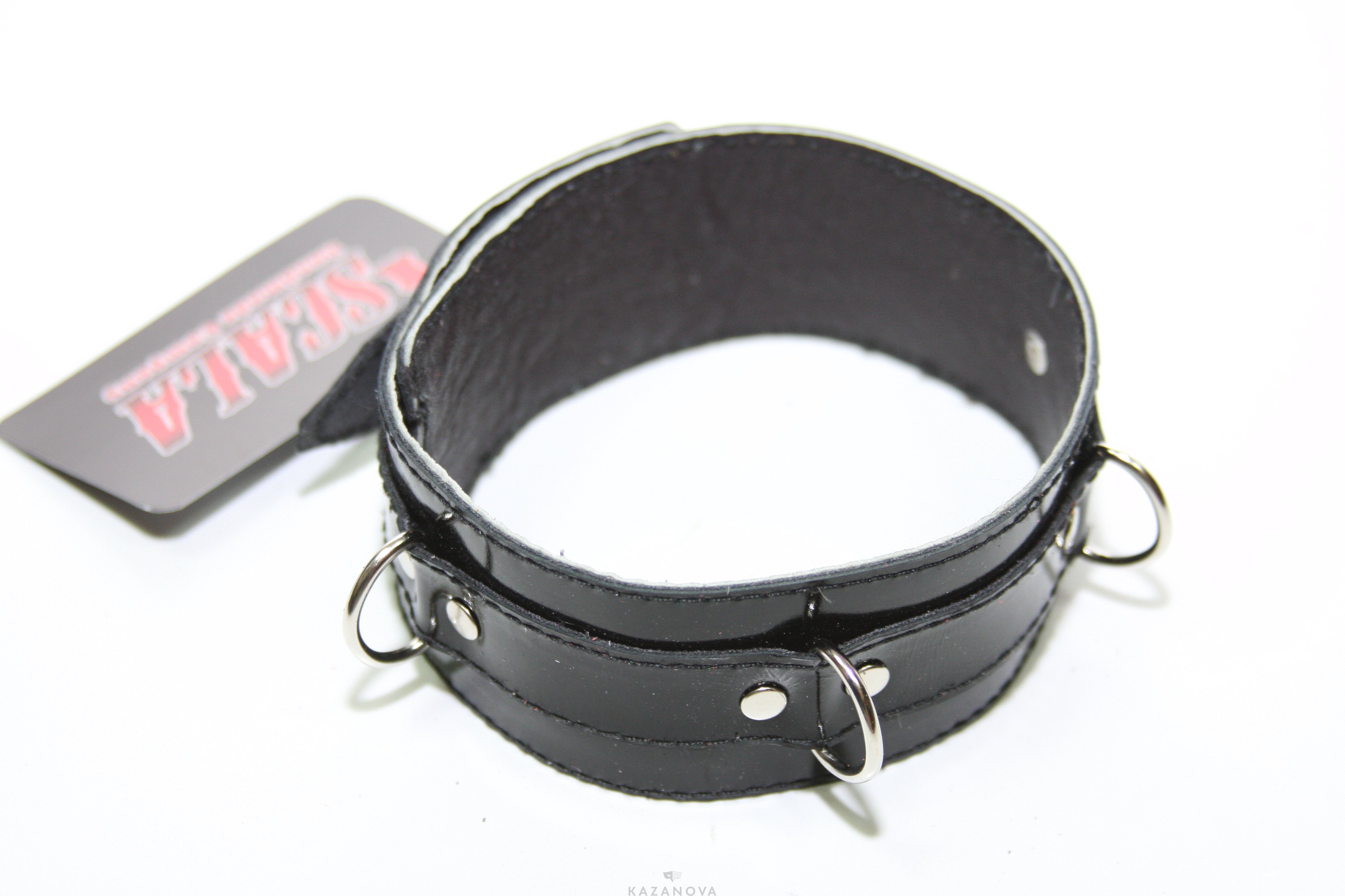 Ошейник из коллекции Scala изготовлен из натуральной кожи превосходного качества, декорирован металлическими элементами и тремя кольцами.