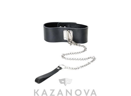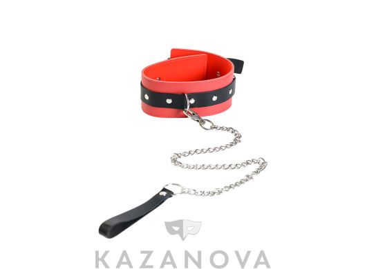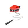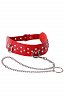 Ошейник красный широкий из натуральной кожи с поводком-цепью