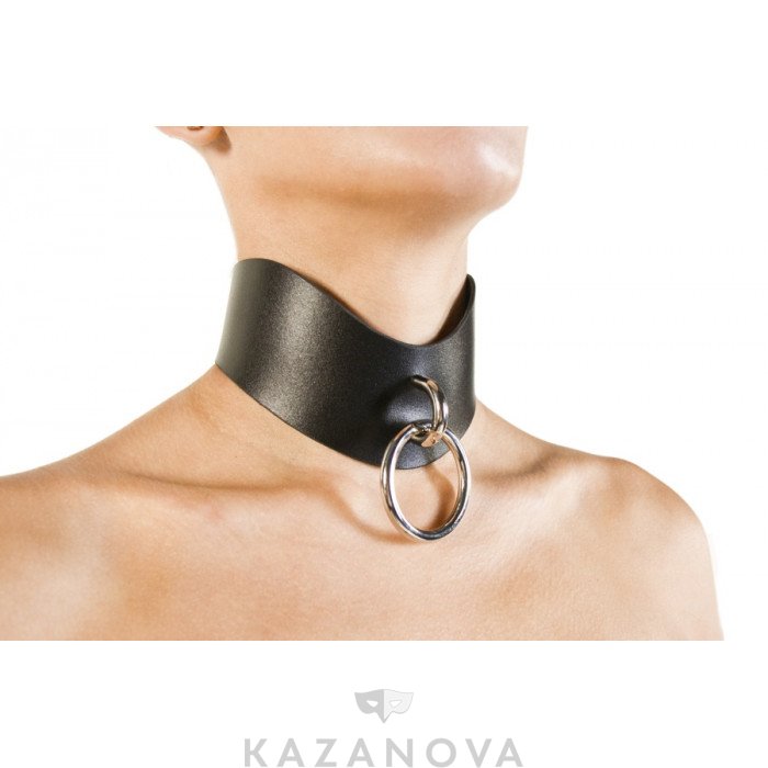 Ошейник Лунный Свет из натуральной кожи широкий с кольцом чёрный