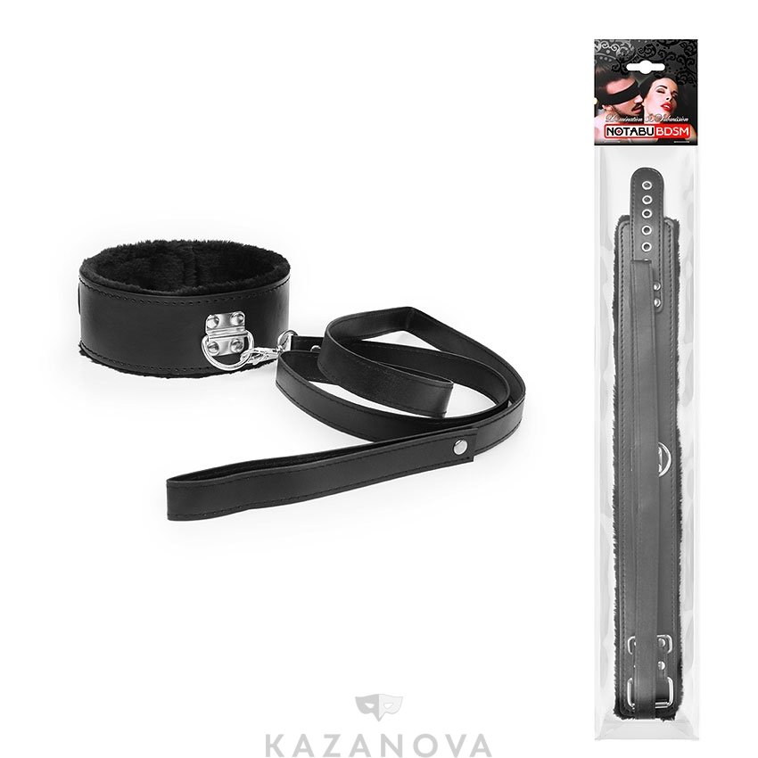 Ошейник Notabu из искуственной кожи с мехом и поводком 551