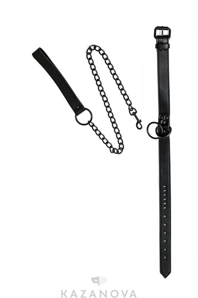 Ошейник с поводком Party Hard Sin из искусственной кожи черный