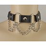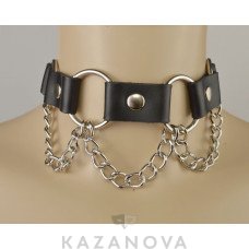 Ошейник изготовлен из натуральной кожи и декорирован кольцами и цепочкой.