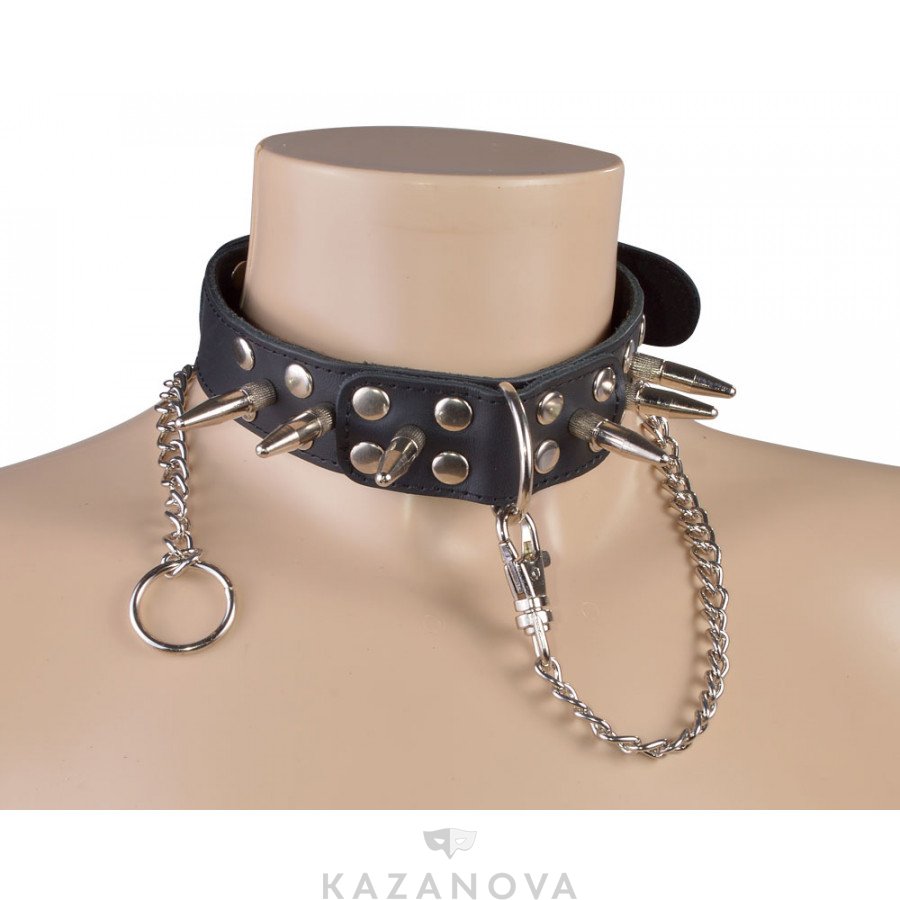 Ошейник Sitabella широкий из натуральной кожи с поводком и шипами
