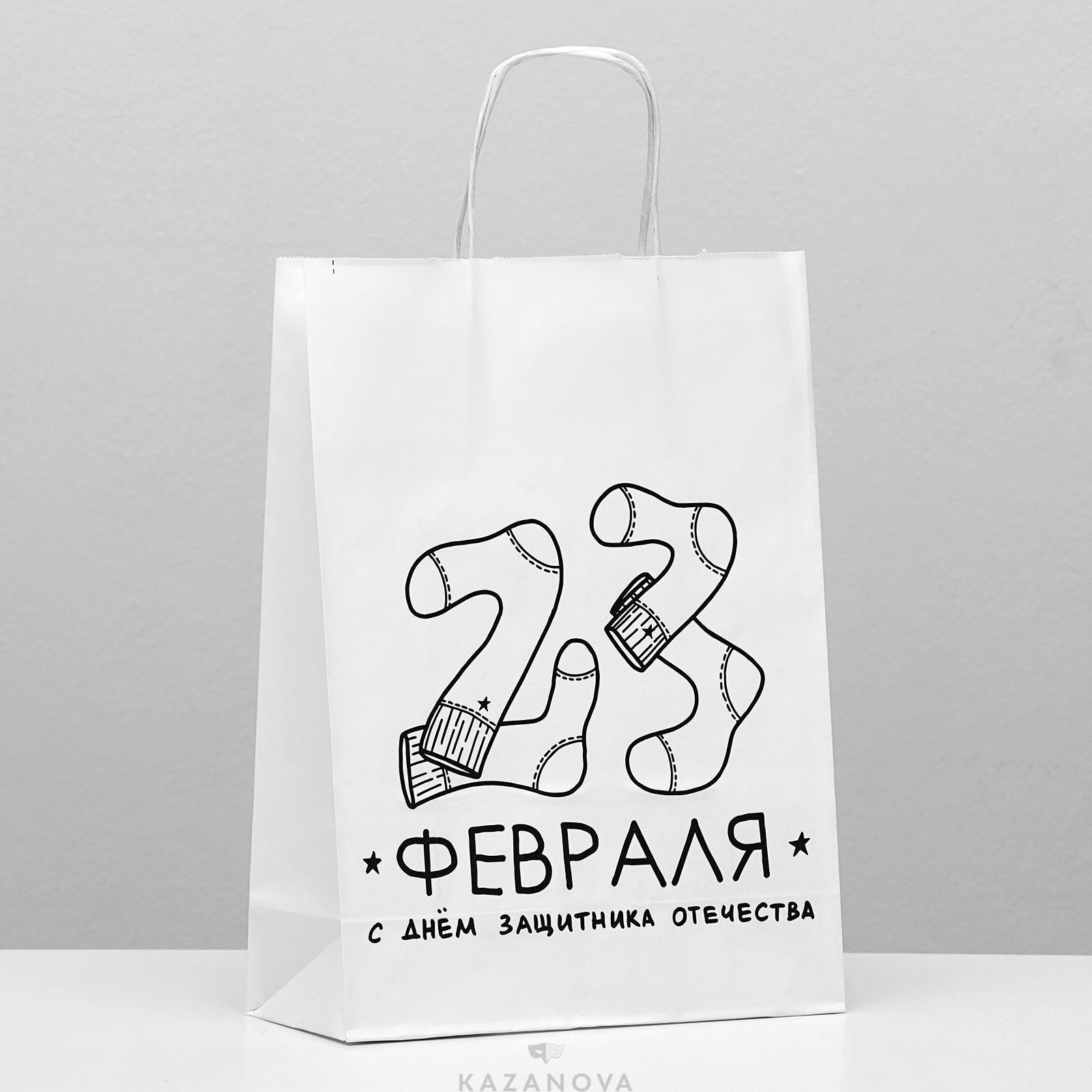 Подарочный пакет «23 февраля» с принтом подчеркнет особенные чувства дарителя.