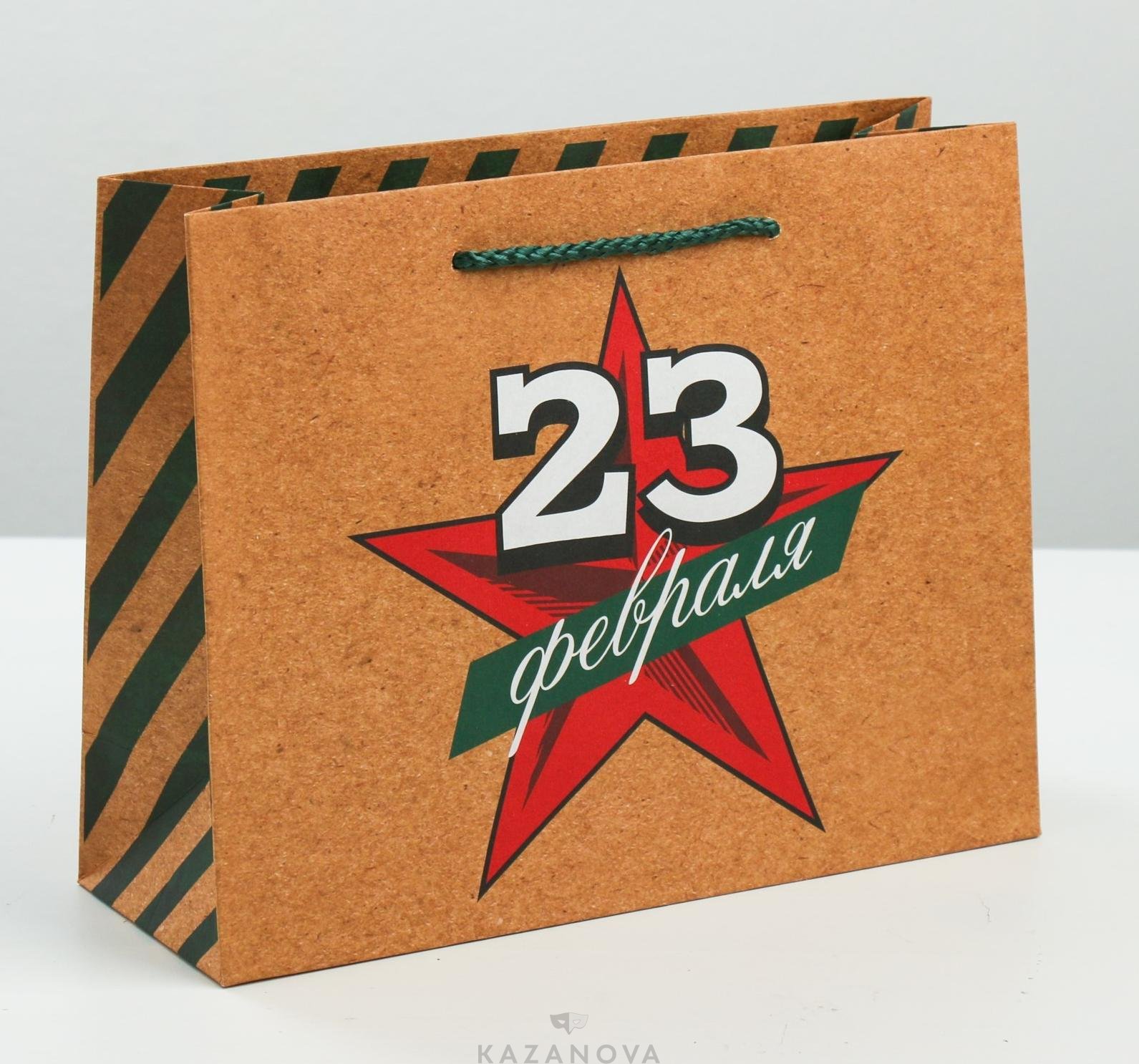 Подарочный пакет «23 февраля» из бумаги с ярким рисунком подчеркнет особенные чувства дарителя.