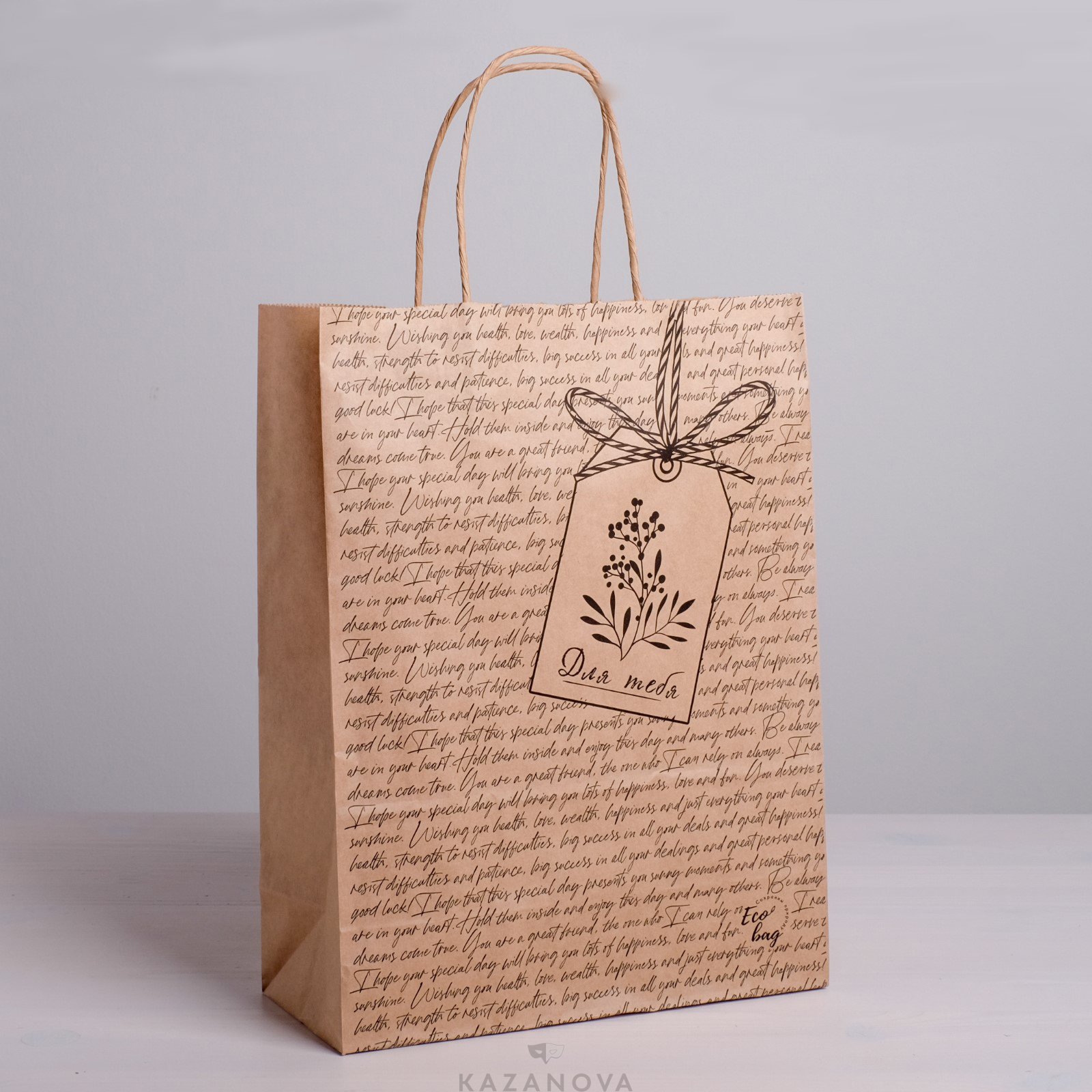 Подарочный пакет «Для тебя» из бумаги с ярким рисунком подчеркнет особенные чувства дарителя.