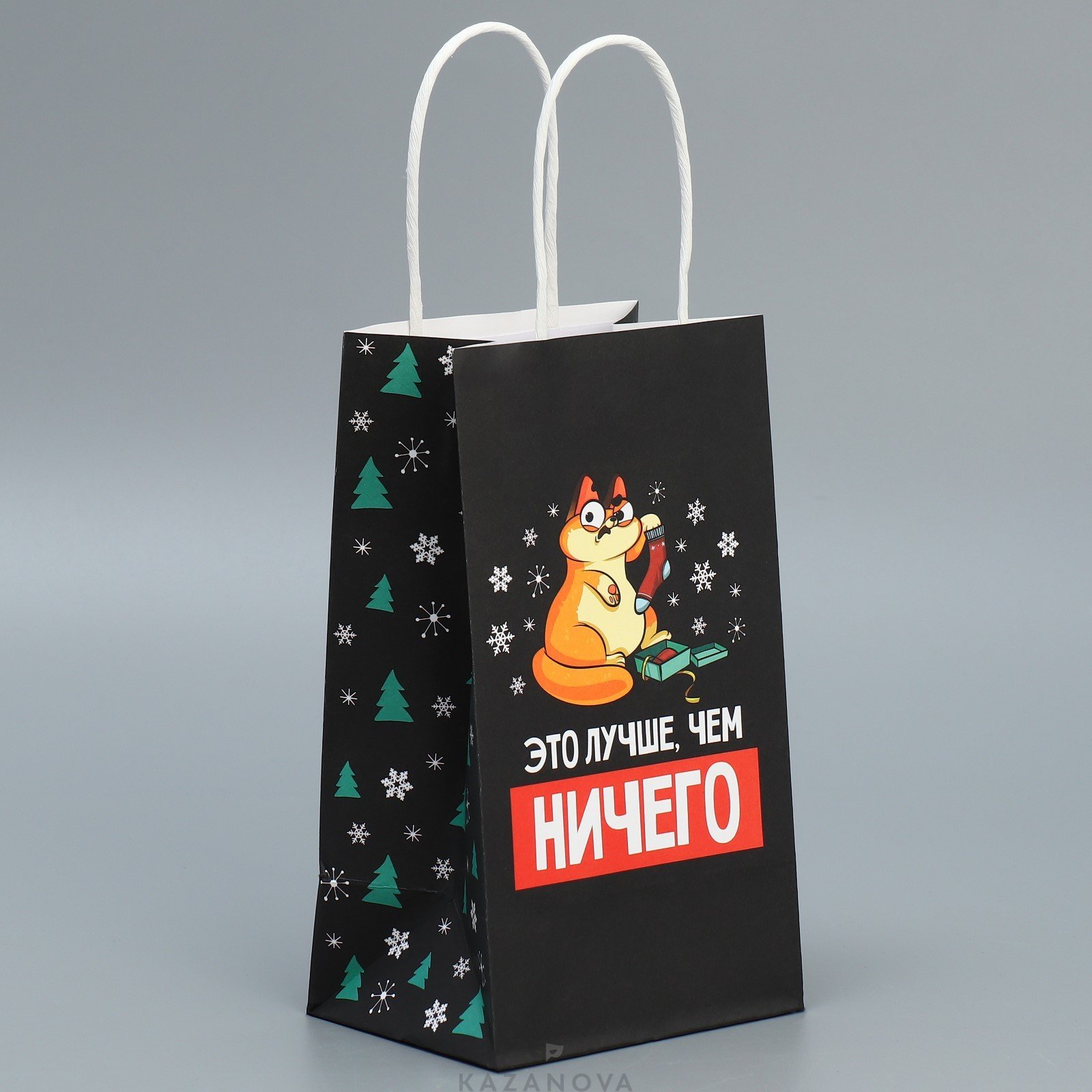 Подарочный пакет «Это лучше, чем ничего» с принтом подчеркнет особенные чувства дарителя.