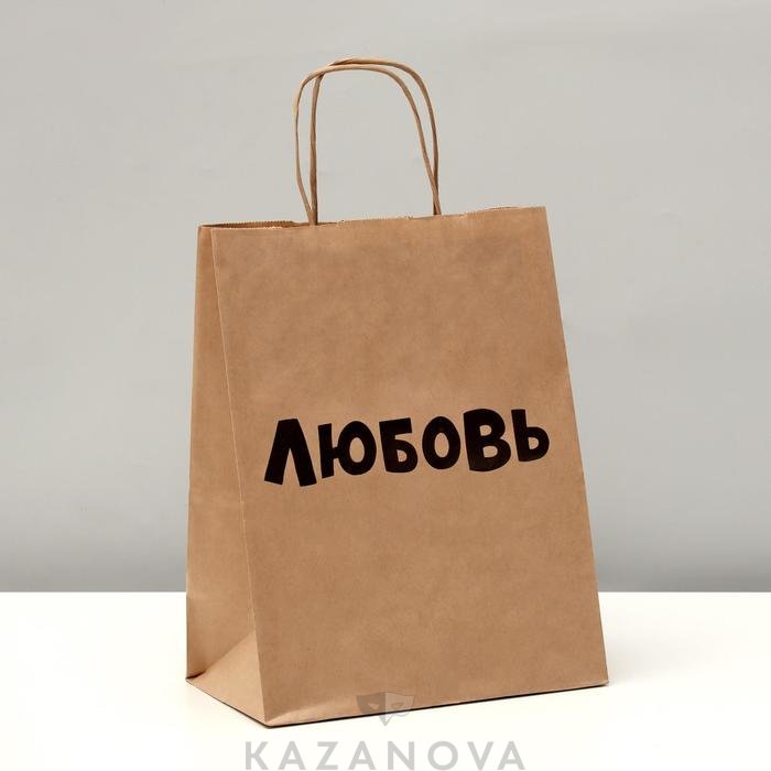Пакет подарочный крафт бежевый "Любовь" 24х10х30 см