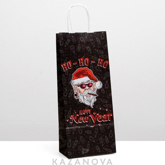 Пакет подарочный крафт "Хо-хо-хо" 14*8*33 см