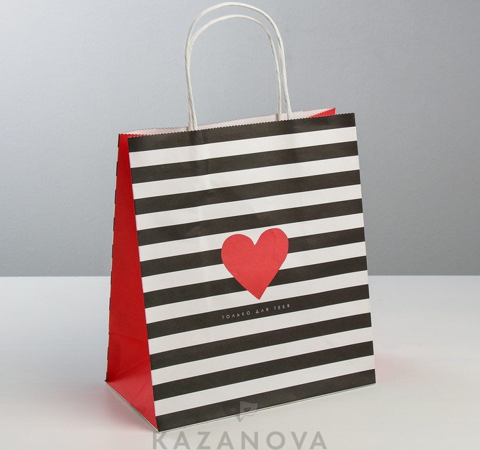 Подарочный пакет «Только для тебя» из бумаги с ярким рисунком подчеркнет особенные чувства дарителя.