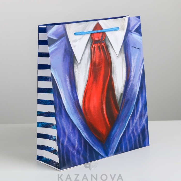 Подарочный пакет «Мистер» из бумаги с ярким рисунком подчеркнет особенные чувства дарителя.