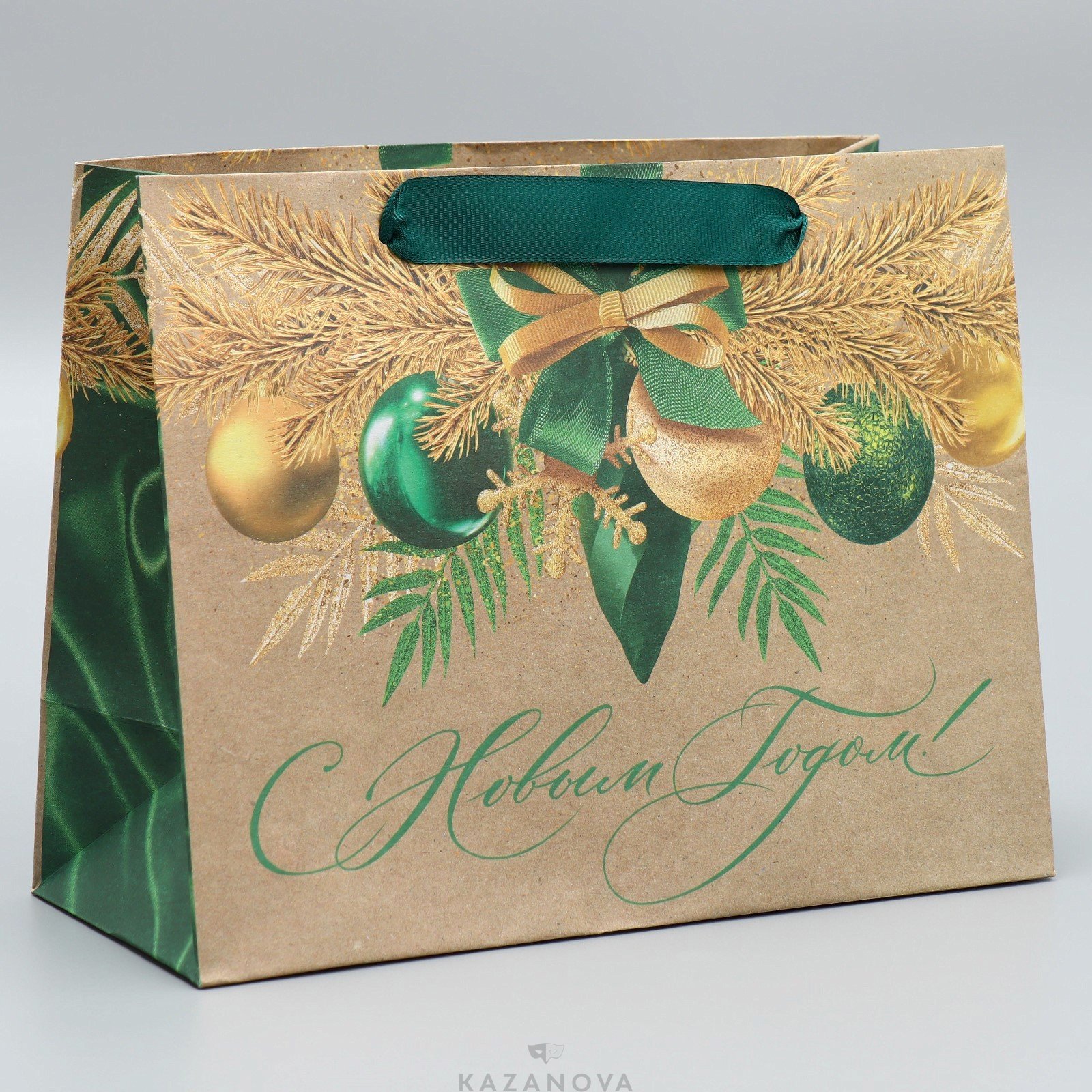 Подарочный пакет «Новогодний изумруд» с принтом подчеркнет особенные чувства дарителя.