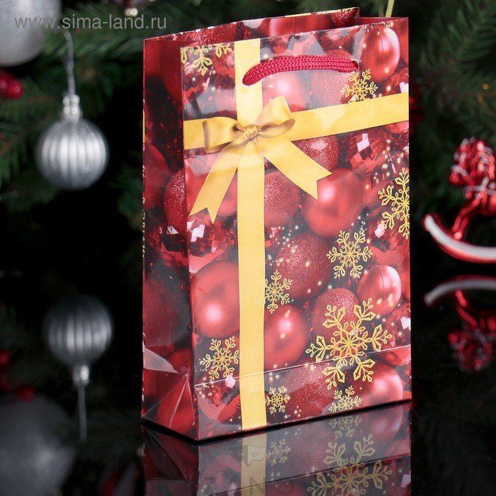 Пакет подарочный "Рождественские украшения" красный
