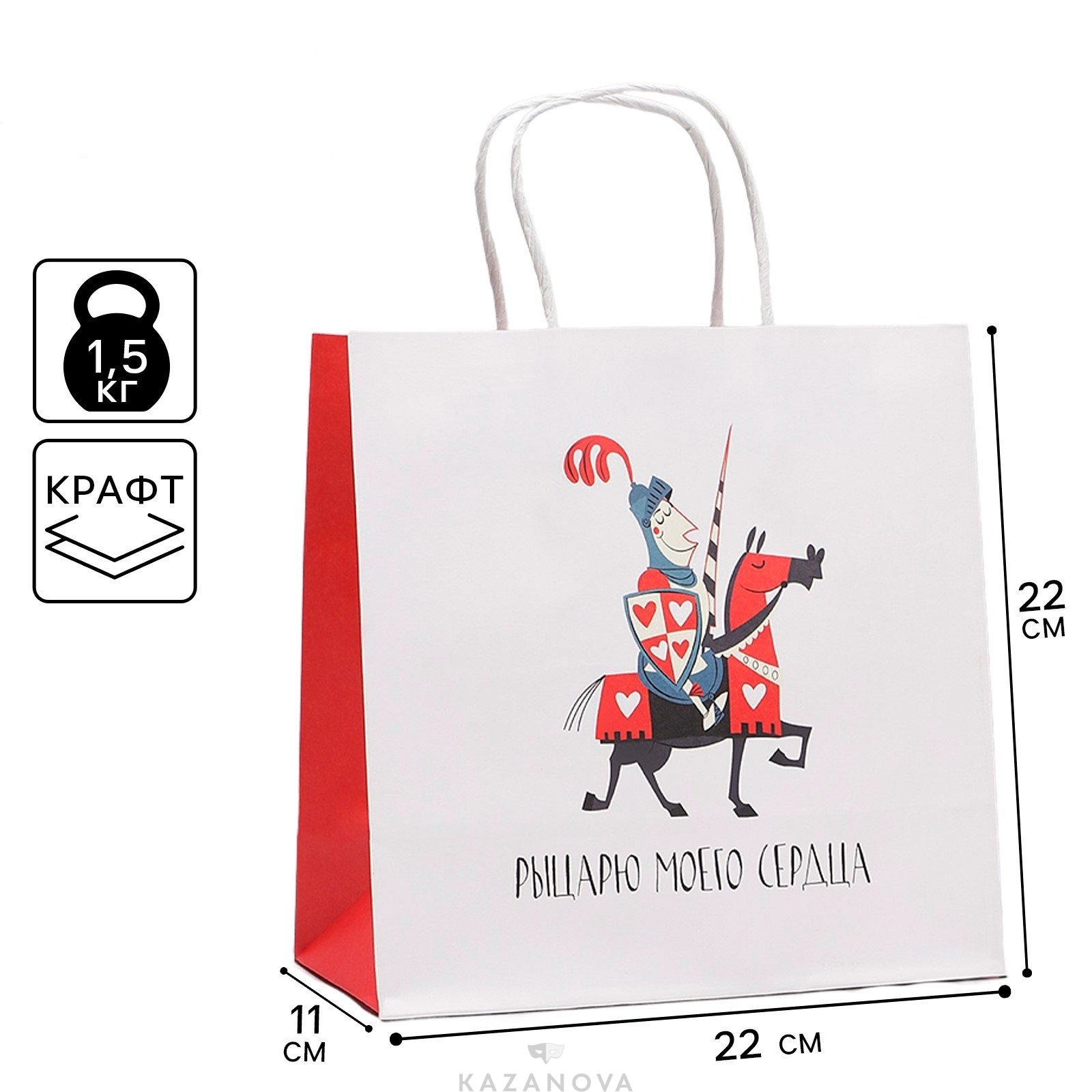 Подарочный пакет «Рыцарю» с принтом подчеркнет особенные чувства дарителя.