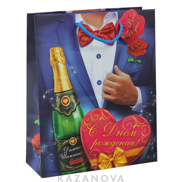 Пакет подарочный "С Днем рождения" L