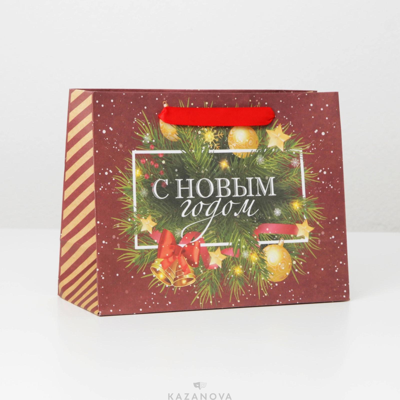 Подарочный пакет «С новым годом» с ярким рисунком подчеркнет особенные чувства дарителя.