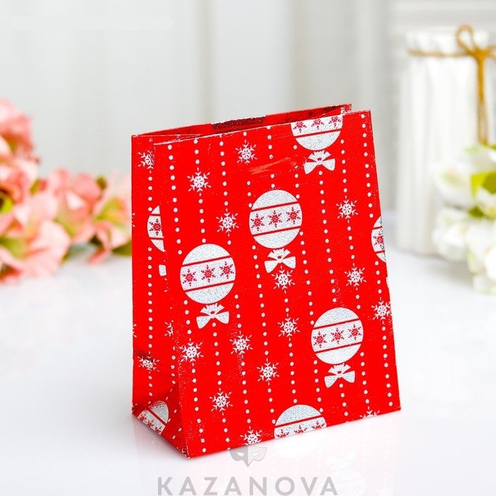 Пакет подарочный с орнаментом красно-серебристый S