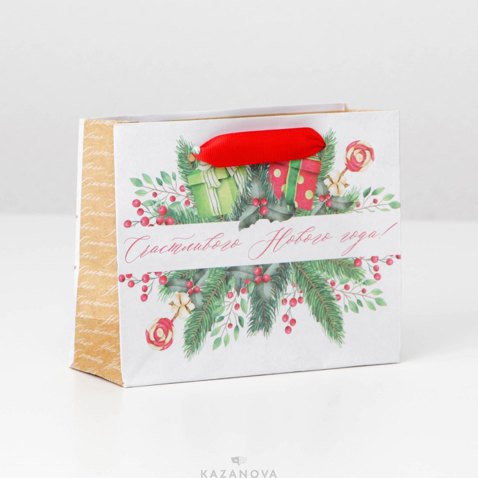 Пакет подарочный "Счастливого Нового года!" 15×12×5,5 см