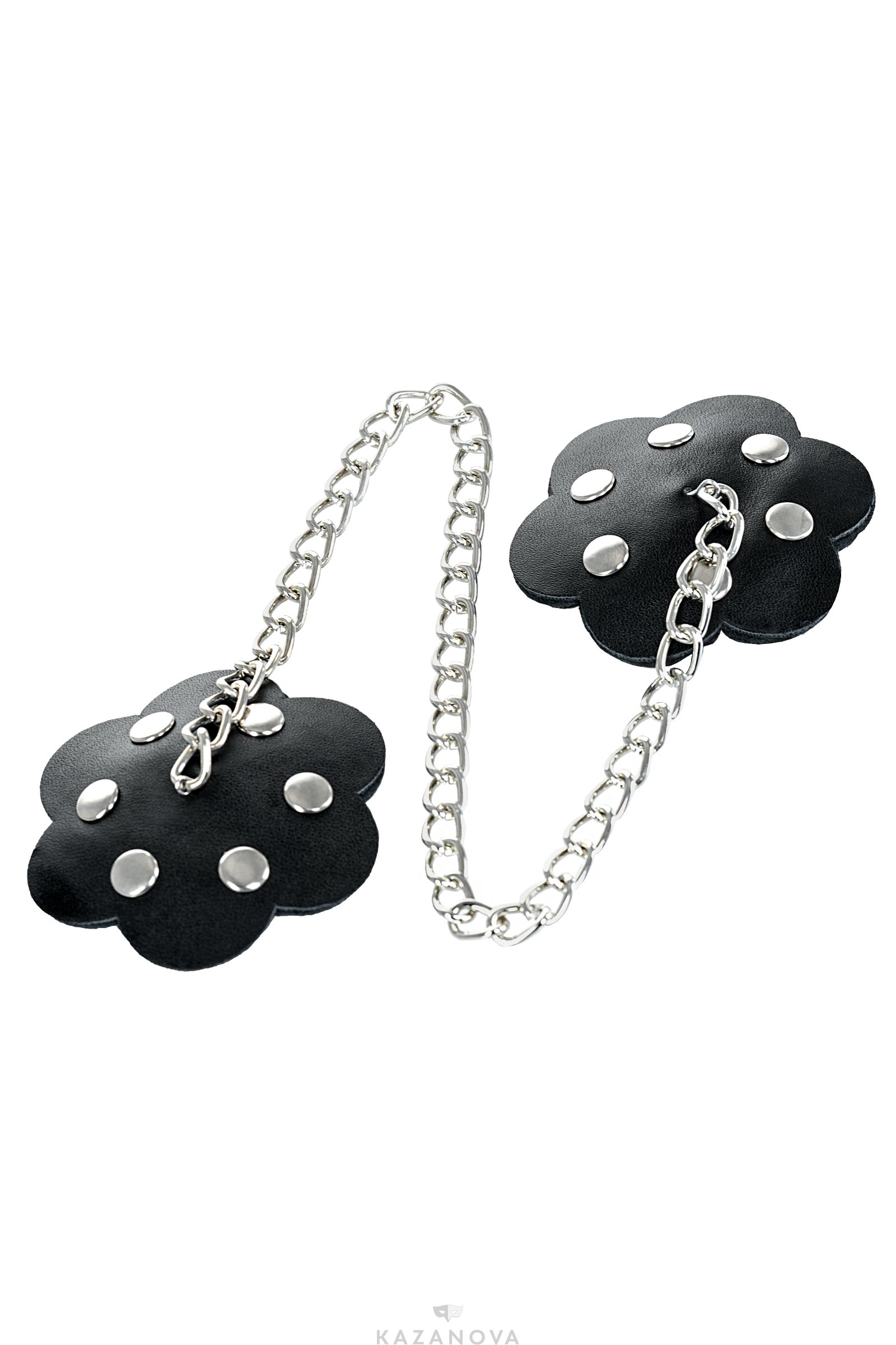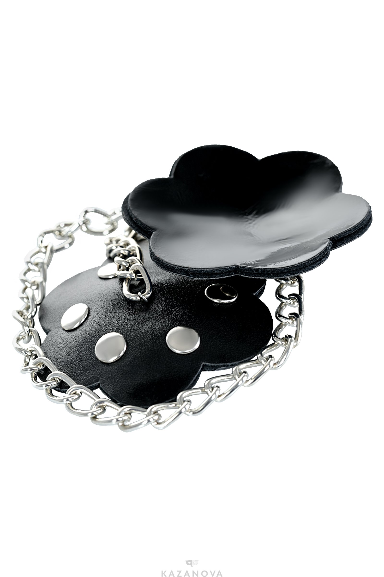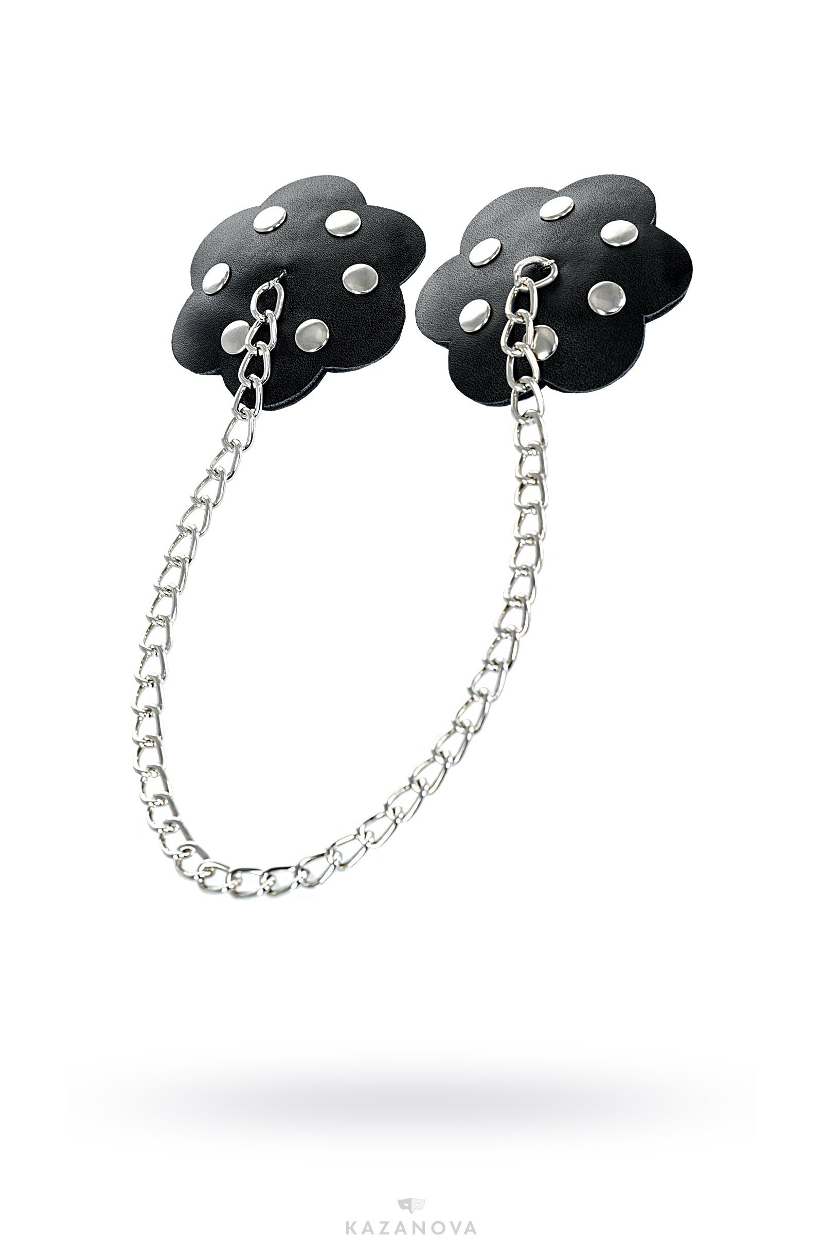 Чёрные наклейки в форме цветок с цепочкой, украшенные металлическими заклёпками, создадут игривое настроение как тебе, так и твоему партнеру.