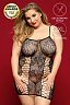 Платье изготовлено из эластичной ткани в крупную и мелкую сетку.