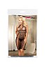 Оригинальный дизайн сочетает равномерное плетение и крупную сетку. Акцентные вставки, имитирующие шнуровку, зрительно вытягивают фигуру и подчеркивают зону декольте. Открытая спина и плечи облегчают образ, а завязки на шее позволяют быстро обнажить грудь, ведь накал страсти может стать внезапным и сногсшибательным.