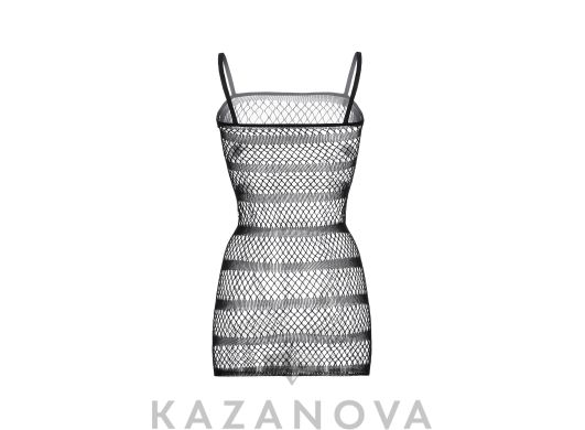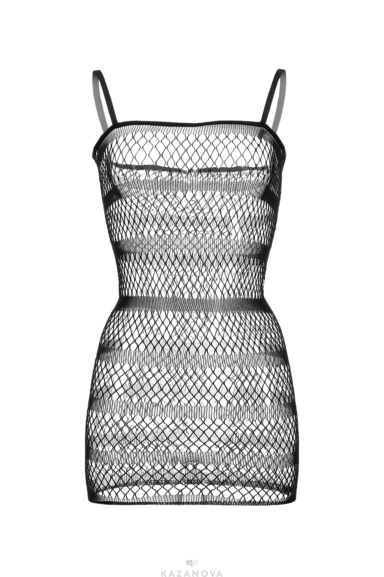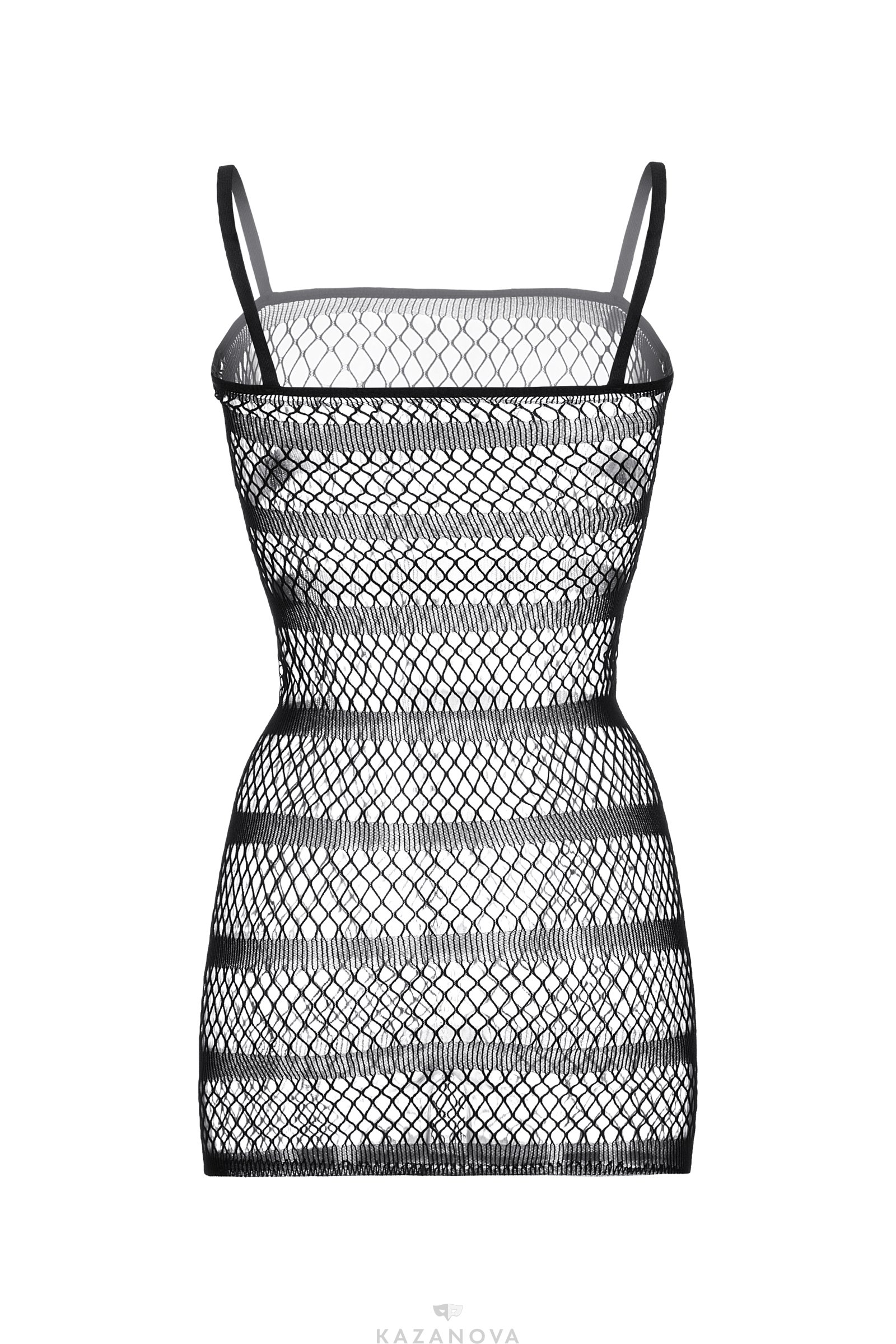 Соблазнительное полупрозрачное платье из мелкой сетки с пикантными полосками подчеркнет возбуждающие формы и приведет в восторг твоего избранника.